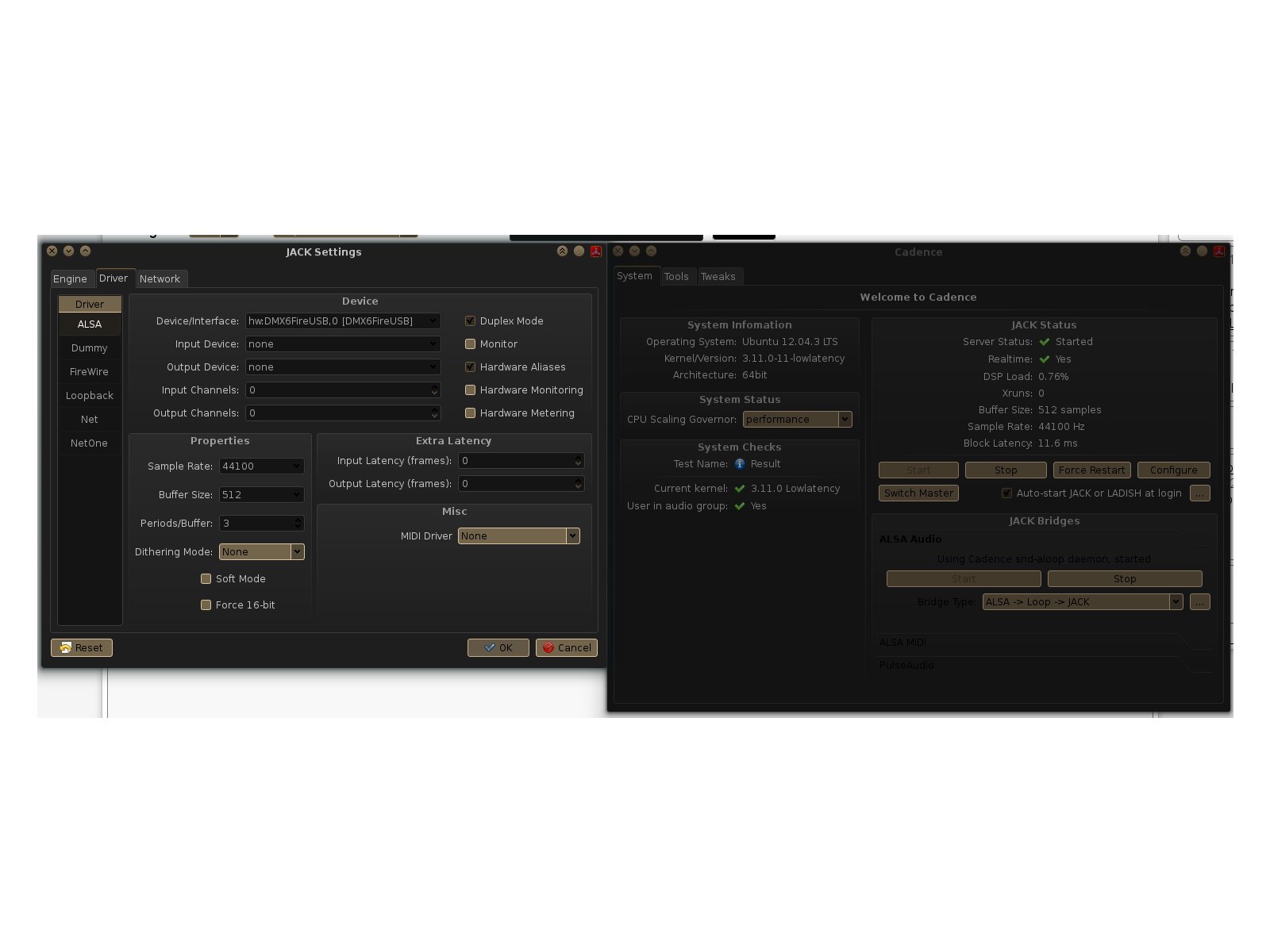 Le matériel et les pilotes ALSA, FFADO, ...