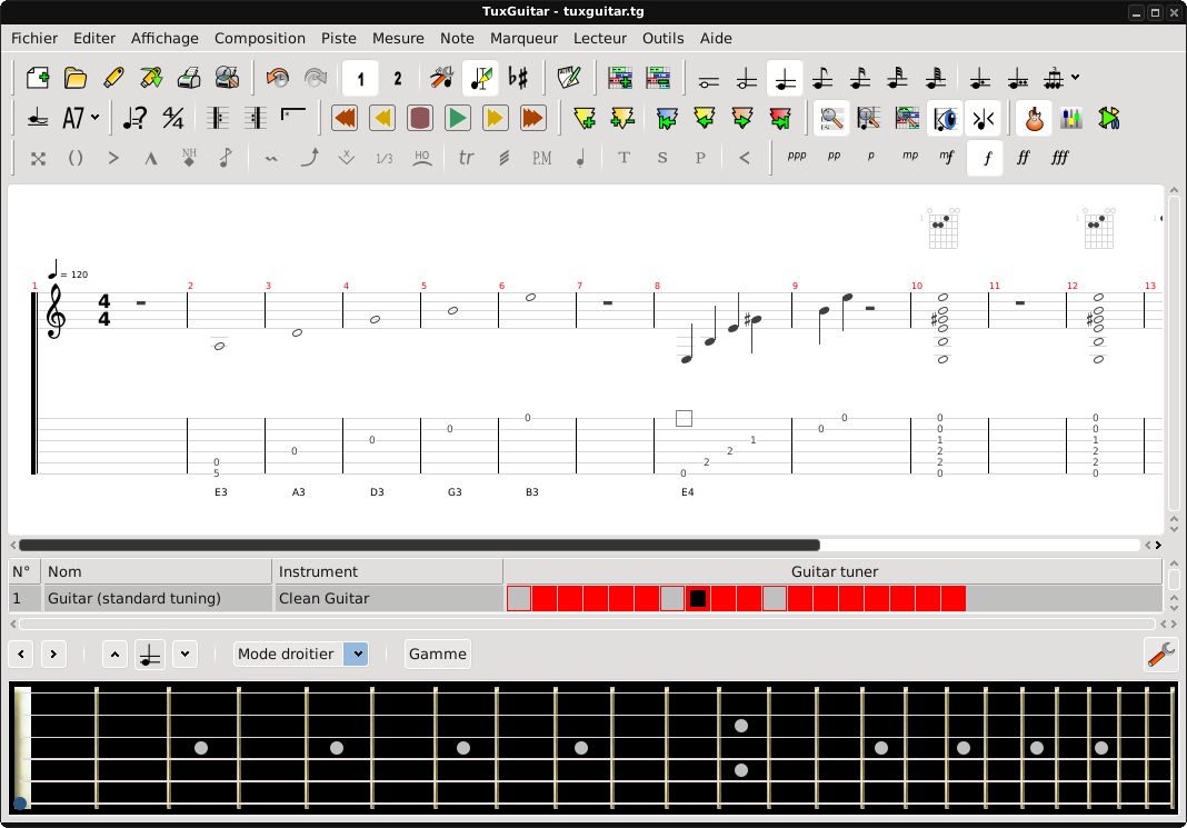 TuxGuitar possède notamment les fonctionnalités suivantes- Édition de tablature