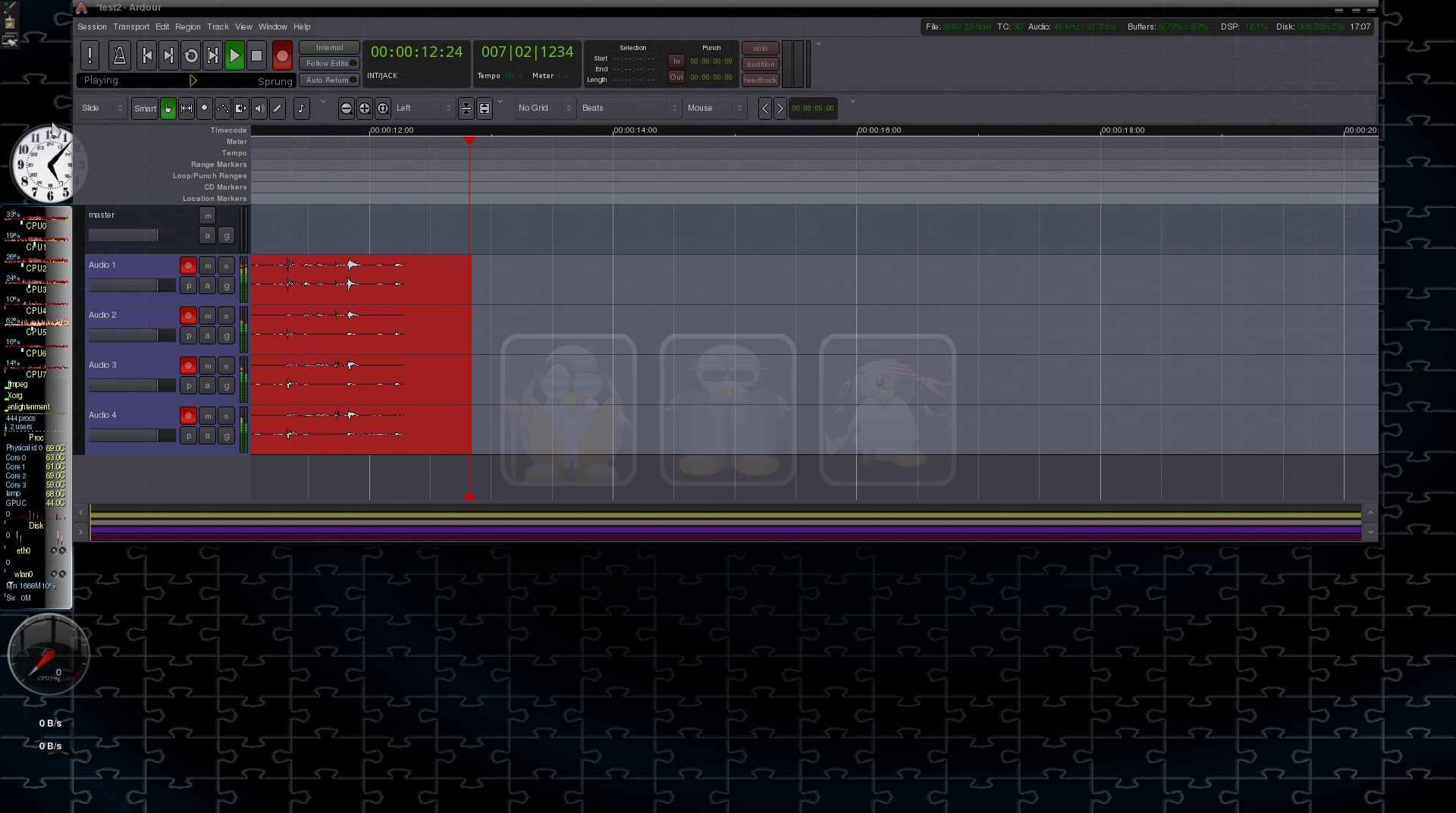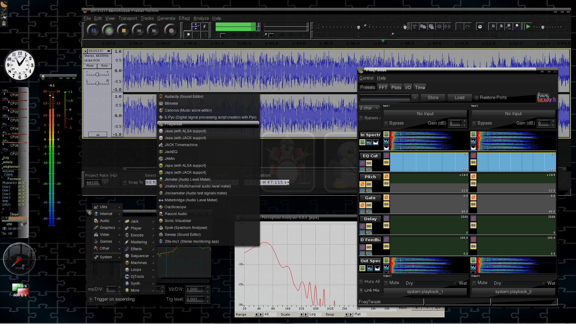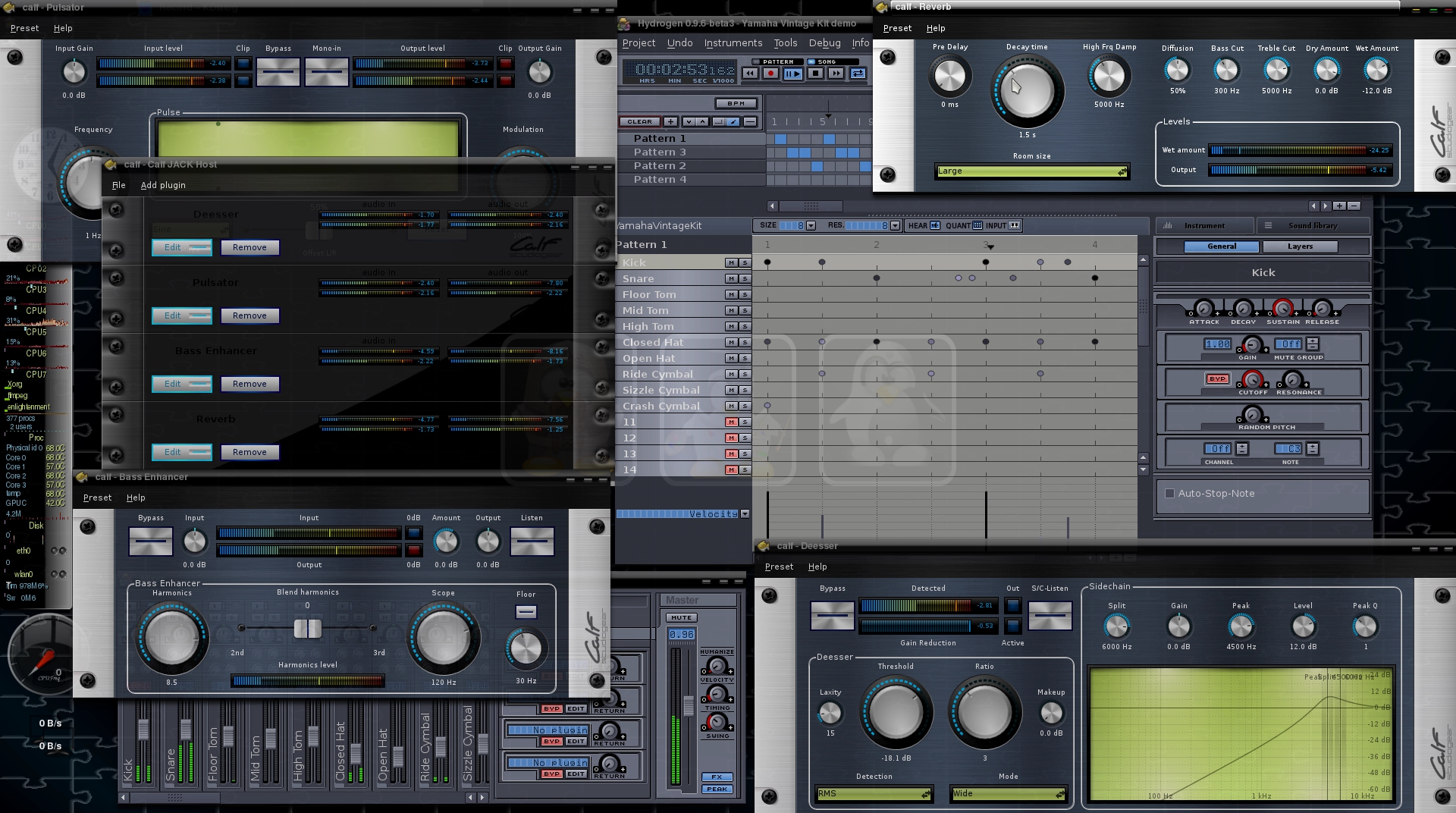 Support : Alsa, Jack, ALSA MIDI, jack-MIDI, PortAudio, LadishX, lash, jack-transport, LV2, Ladspa, Dssi, Nyquist, Vamp, VST