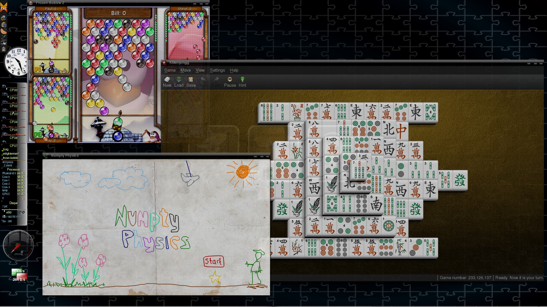Une solution "clé en main" construite avec les outils Debian-Live et qui inclut l'environnement de bureau e18 pour la version 64bit ou e17+ecomorph (3D) pour les anciennes versions, Jack2 comme serveur de son principal et une large collection de programmes.