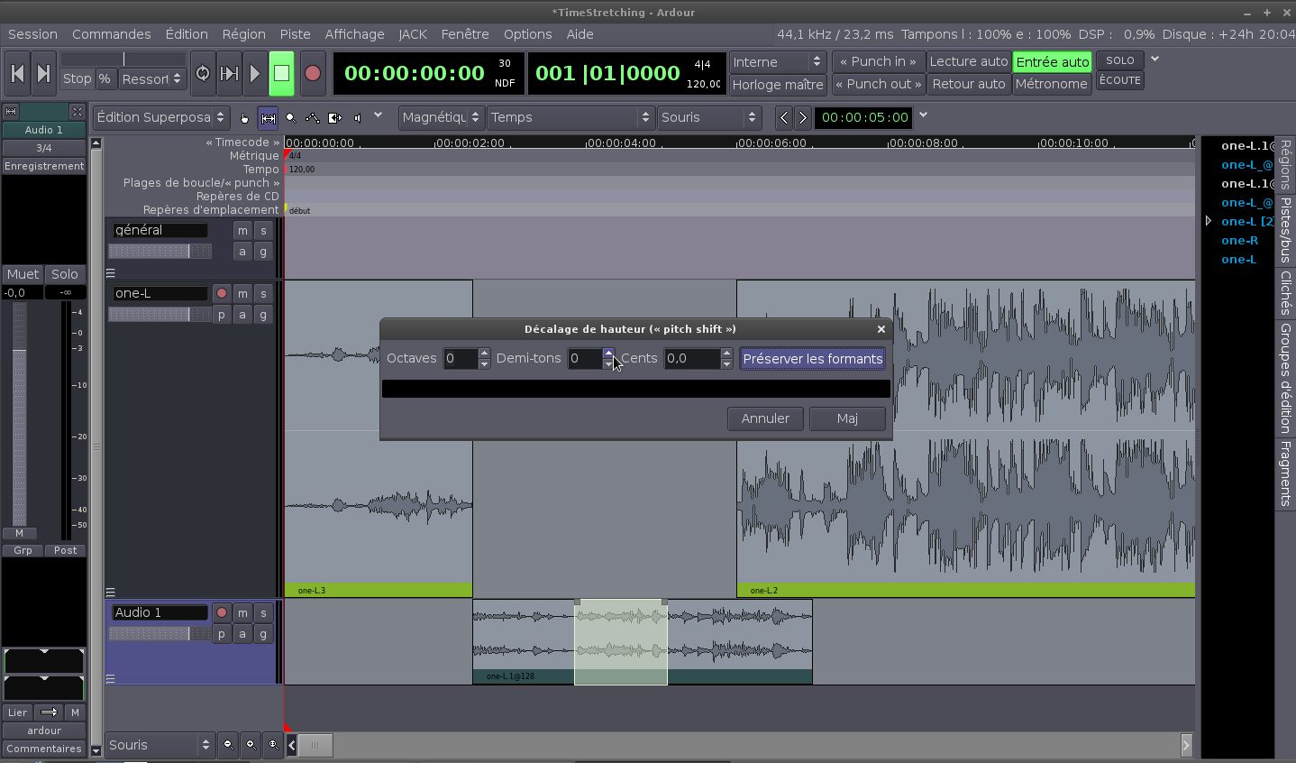 Historique: Ardour 2 - étirement temporel
