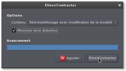 Maintenant vu que la zone c'est allongée donc le tempo s'en trouve lui aussi modifié du coup il va falloir lui faire une correction de hauteur (ou de tonalité) pour que ça sonne correctement.