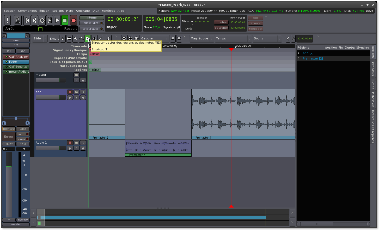contracter et aussi en moduler la hauteur (tonalité) de sorte à pouvoir se servir de cette portion comme une création à part entière. Ainsi on verra à l'usage combien les outils d'édition de Ardour sont puissants.