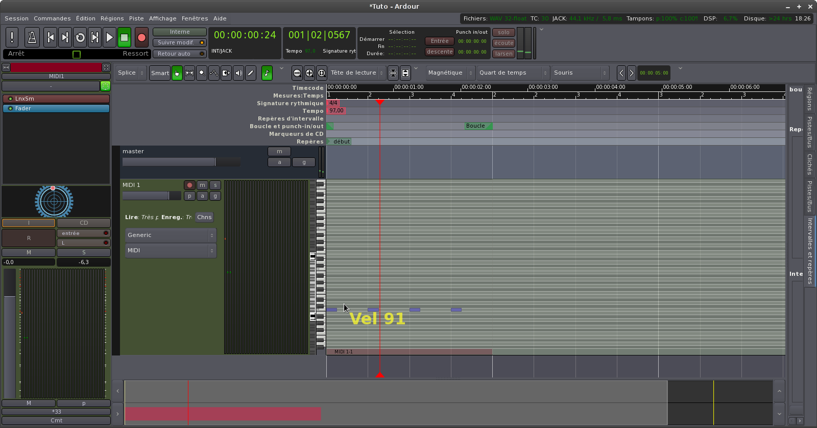 Toutefois l'édition midi peut présenter certains problèmes instabilité récurrente et provoquer des crashs de Ardour.