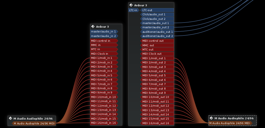En effet si le canaux audio sont nommés explicitement il n'est est pas de même pour les canaux MIDI du fait qu'ils soient invisibles dans dans le gestionnaire de connexions.