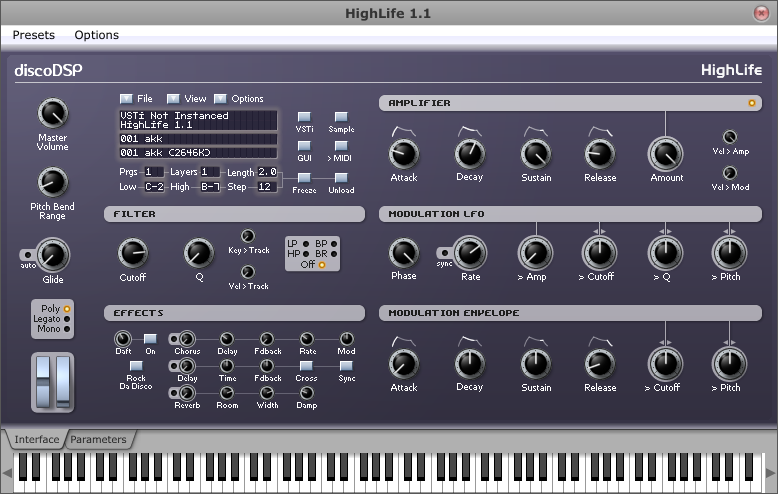 Highlife est un sampler très puissant avec gestion de banques, effets, filtres, modulation etc... et même un editeur audio (cliquer sur "View")!: