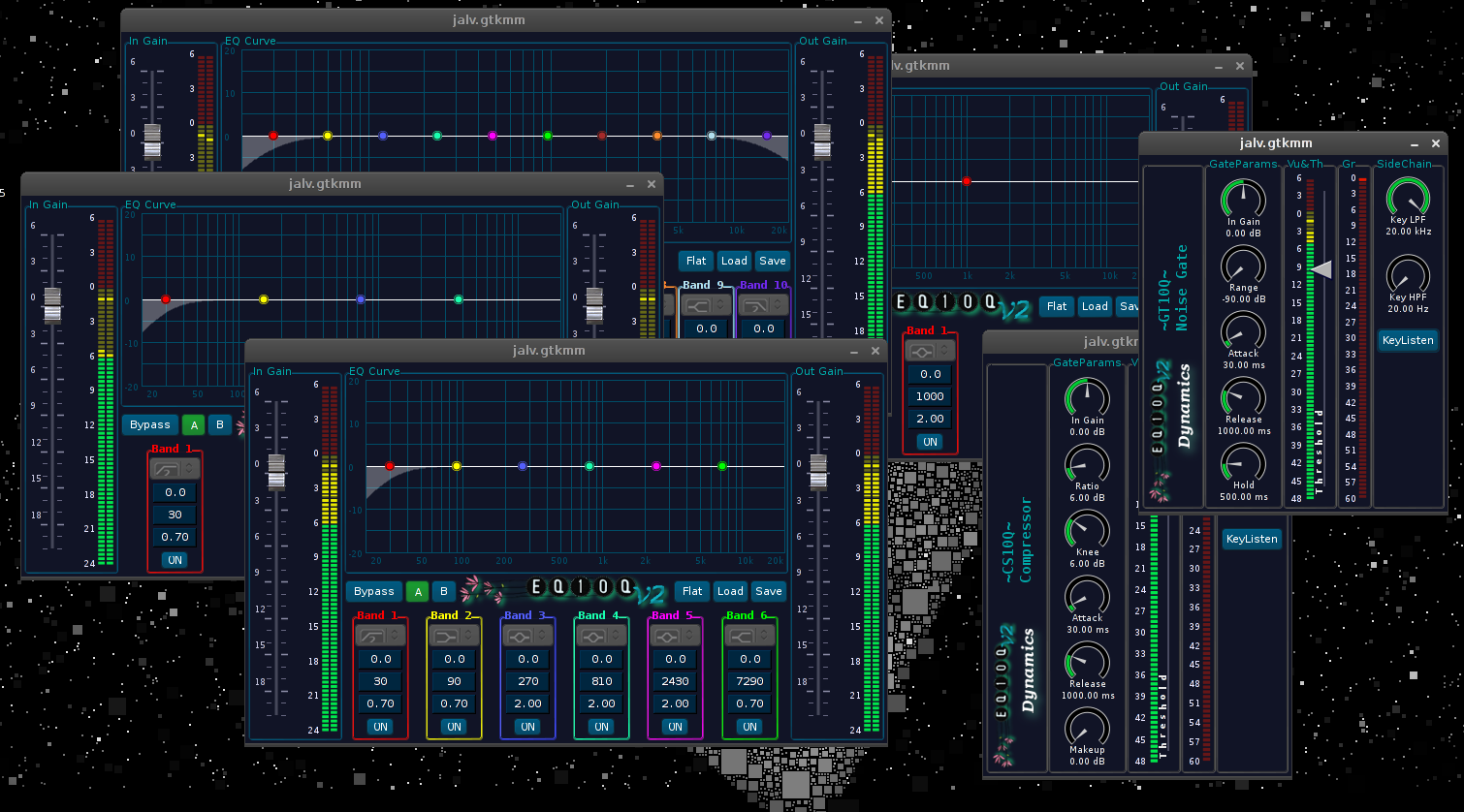 - EQ10Q ne semble pas fonctionner avec LV2rack pour l'instant. Par contre, avec Ardour 3 (avec un support pour les LV2), pas de souci.