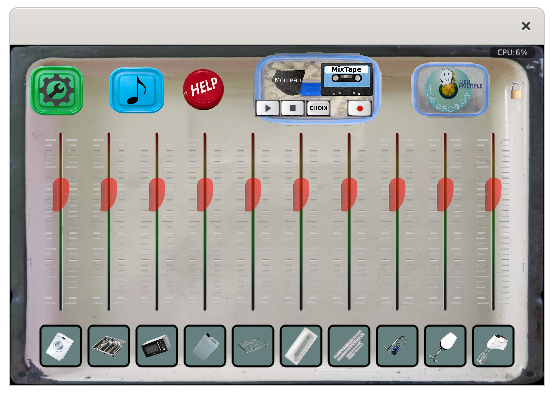 - À l'ouverture, on arrive sur la page de jeu, c'est une console de mixage (avec des faders en haricot)