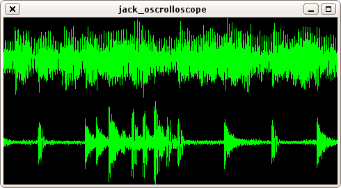 jack_oscrolloscope est un visualisateur de formes d'ondes simple fonctionnant sous jack. La forme d'onde est dessinée en temps-réel, donc vous pouvez voir le signal à l'instant même ou il passe par le port d'entrée virtuel audio jack.Installation