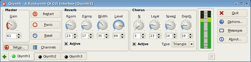 Les synthétiseurs ont pour particularité de synthétiser le son sur demande. Avec un clavier maître, cela signifie que l'onde sonore est calculée en temps-réel au moment où on appuie sur la touche.Sous Linux, on trouvera beaucoup de synthétiseurs ou d'émulateurs de synthétiseurs dont voici 3 exemples ...