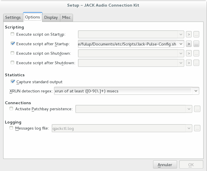 * Ajouter le fichier dans dans Qjack/Setup/Options/Script-After-Startup "voir image ci-après"