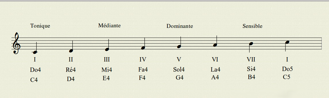 Voici cette gamme, le nom des notes au dessous pour ceux d'entre vous qui ne lisent pas le solfège :