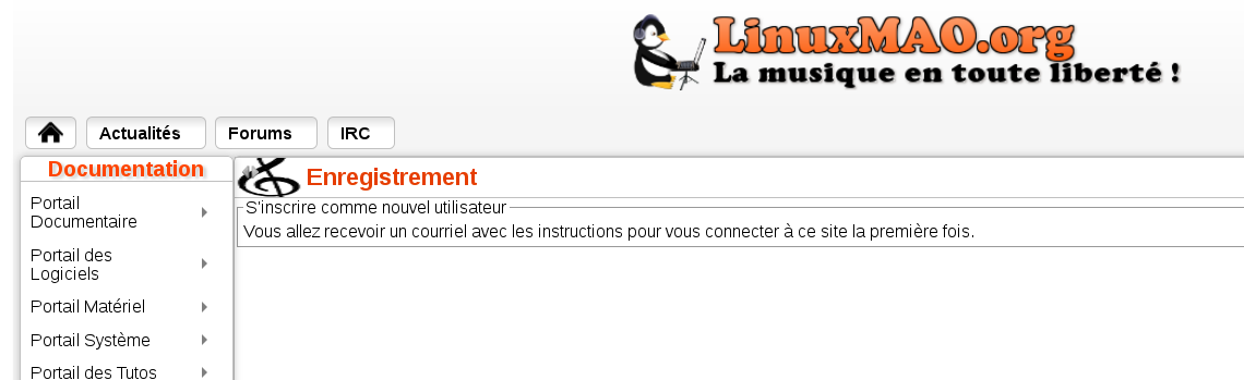 D'autre part, en validant mon inscription j'accepte que l'administration de LinuxMAO.org se réserve le droit de supprimer tout compte utilisateur ne répondant pas à ces critères.