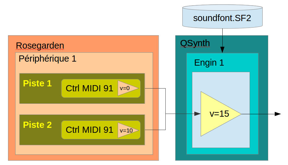 Je désignerai par Vfinal la valeur règlée dans l'instance de qsynth et Vcontrol la valeur envoyée par le séquenceur, via le code contrôle 91.