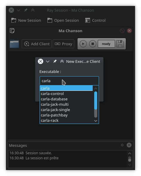 Si pour un même morceau vous utilisez Ardour, Carla et Hydrogen par exemple, alors avec Ray Session vous n'aurez qu'à ouvrir la session et toutes les applis s'ouvriront avec les bons fichiers. Une simple sauvegarde depuis Ray Session sauve les fichiers de tous les programmes.
