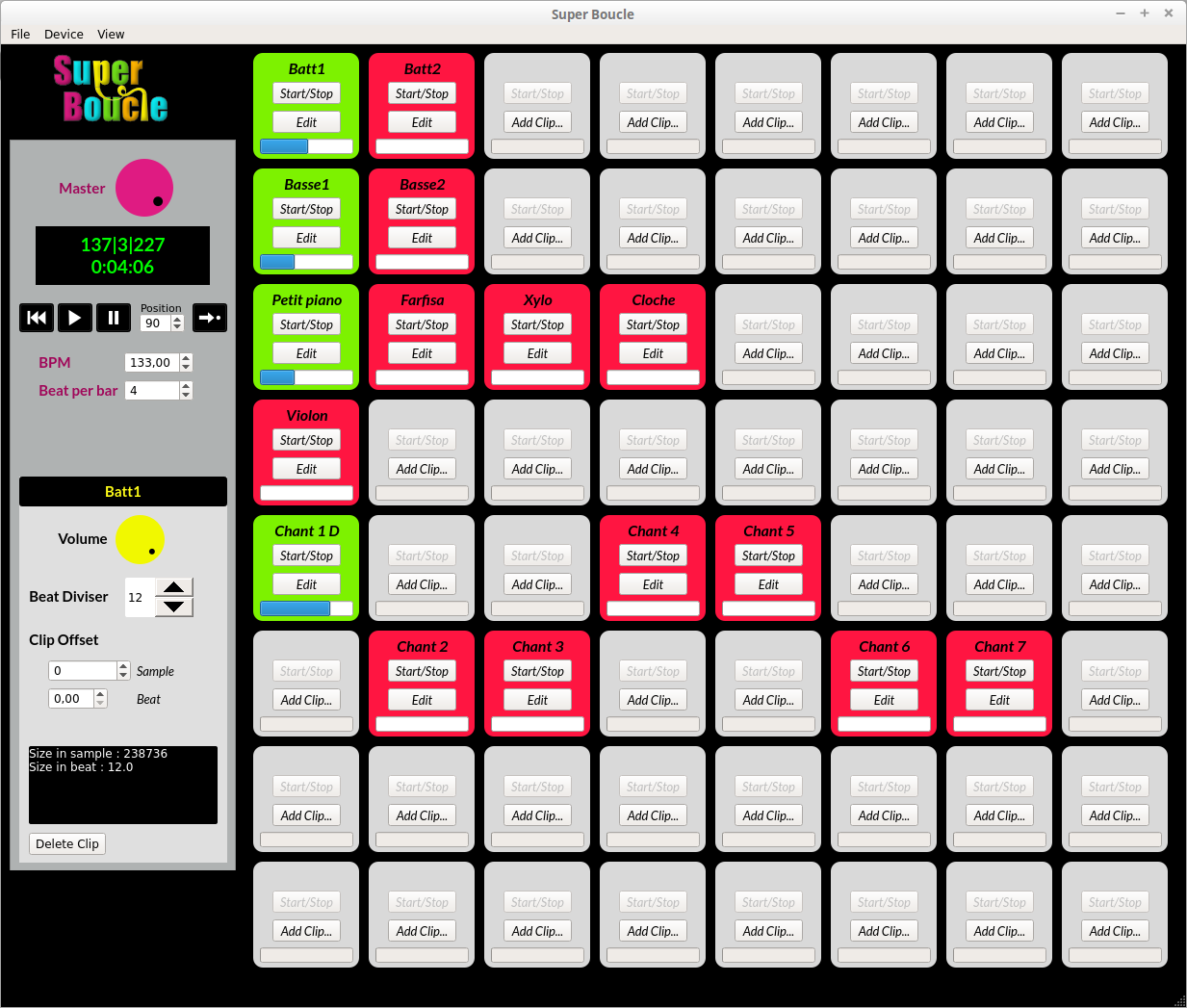 SuperBoucle est un logiciel de boucles, synchronisé avec jack transport et complètement contrôlable en MIDI.