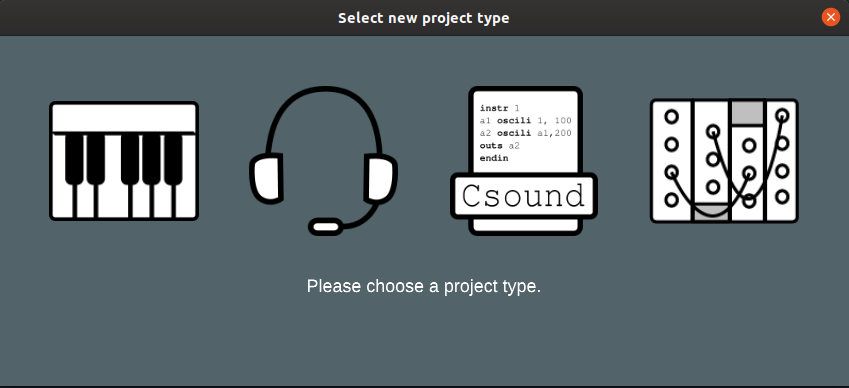 Vous pouvez créer un projet minimal via File->New CSound file, la fenêtre suivante apparaît :