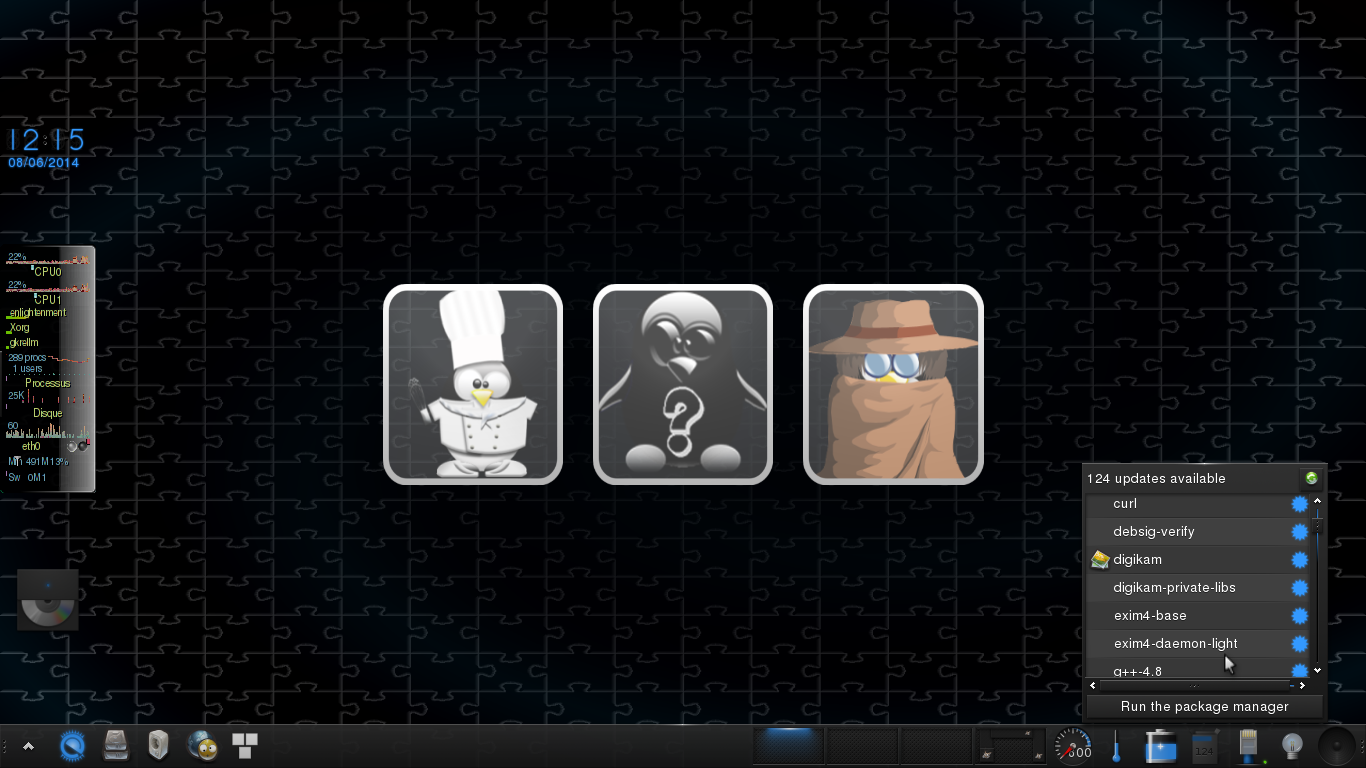 Une solution "clé en main" construite avec les outils Debian-Live et qui inclut l'environnement de bureau e18 pour la version 64bit ou e17+ecomorph (3D) pour les anciennes versions, Jack2 comme serveur de son principal et une large collection de programmes.
