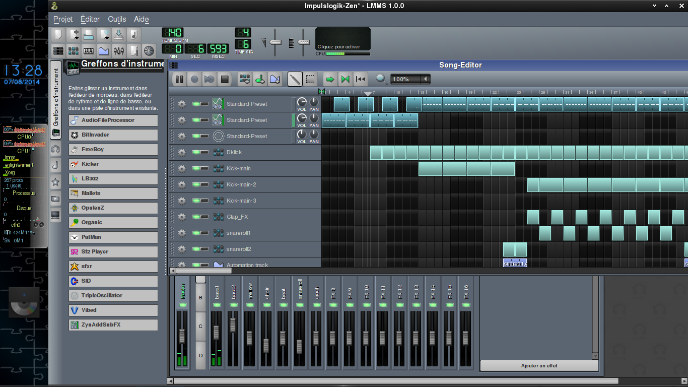 Lmms en version 1.0.0 (autres sequencers: Ardour 2 et 3, Muse, QTractor,