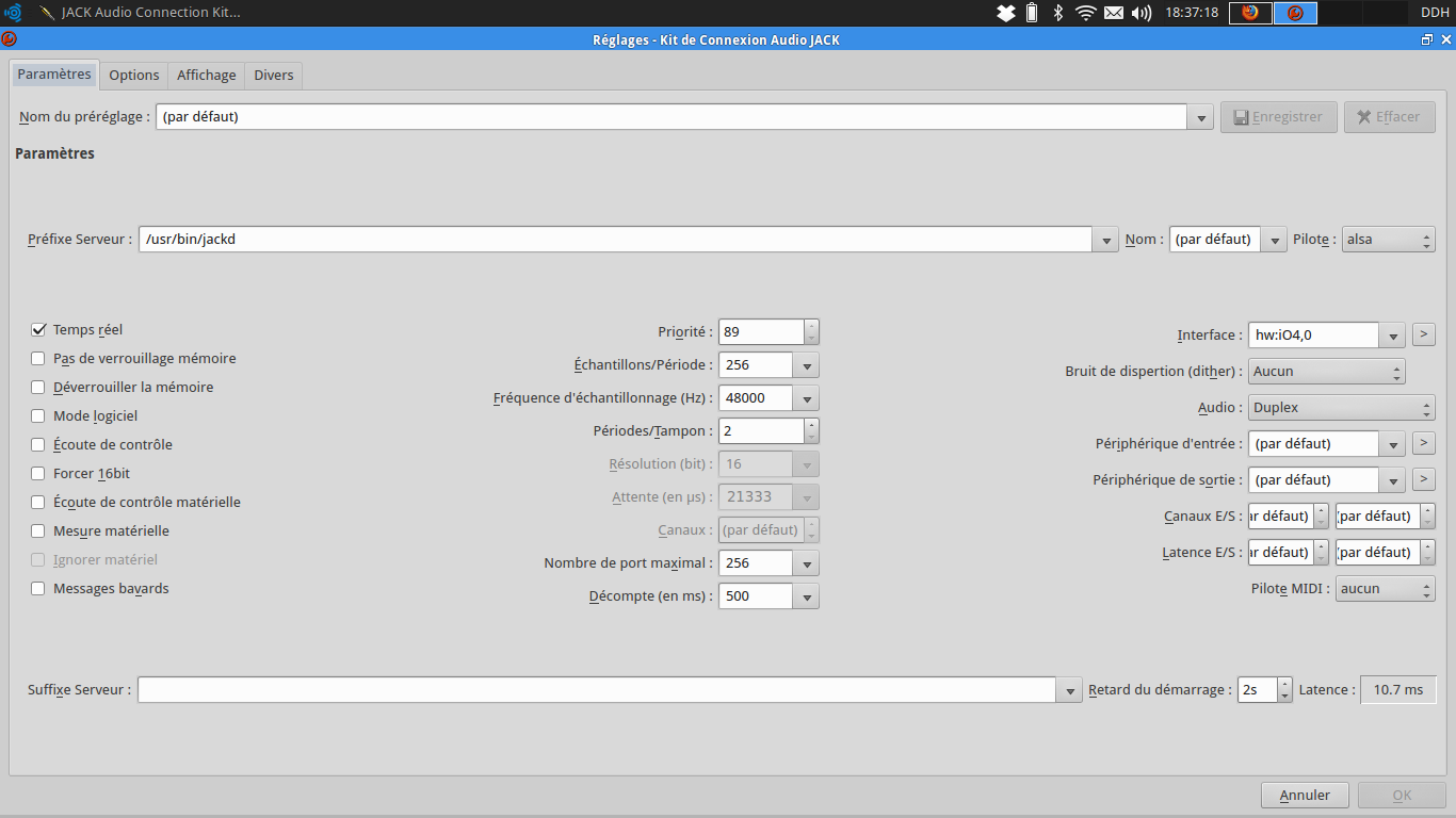 - Tu as bien 48Khz dans les Réglages de Qjackctl