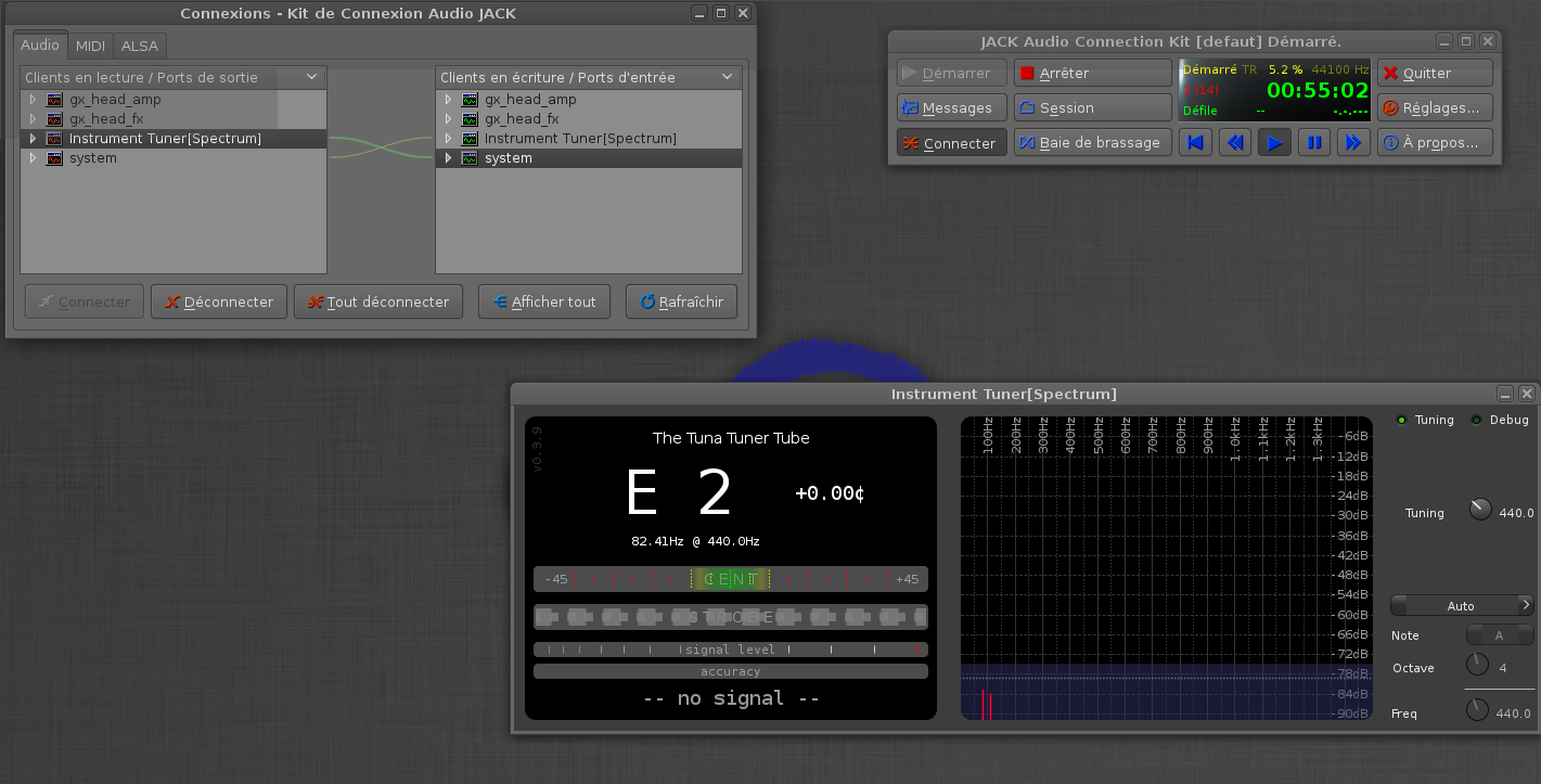 Dans l'ampli il y a du signal mais les potards n'influent pas (?) ni dans l'accordeur. Qui a fonctionné à un moment pour je ne sais quelle raison.