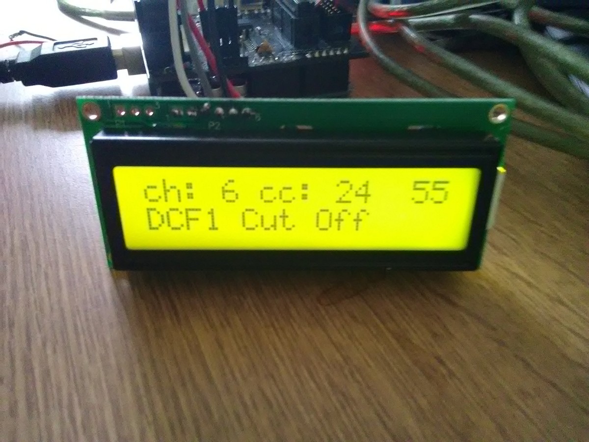 J'avais, dans un coin, une carte Arduino Diecimila, une armure Midilickuino, 2 licklogick (8 potards par carte) et deux diliktal (8 bpoutons et 8 DEL chaque). J'ai ajouté un afficheur 16x2 sur bus I²C.