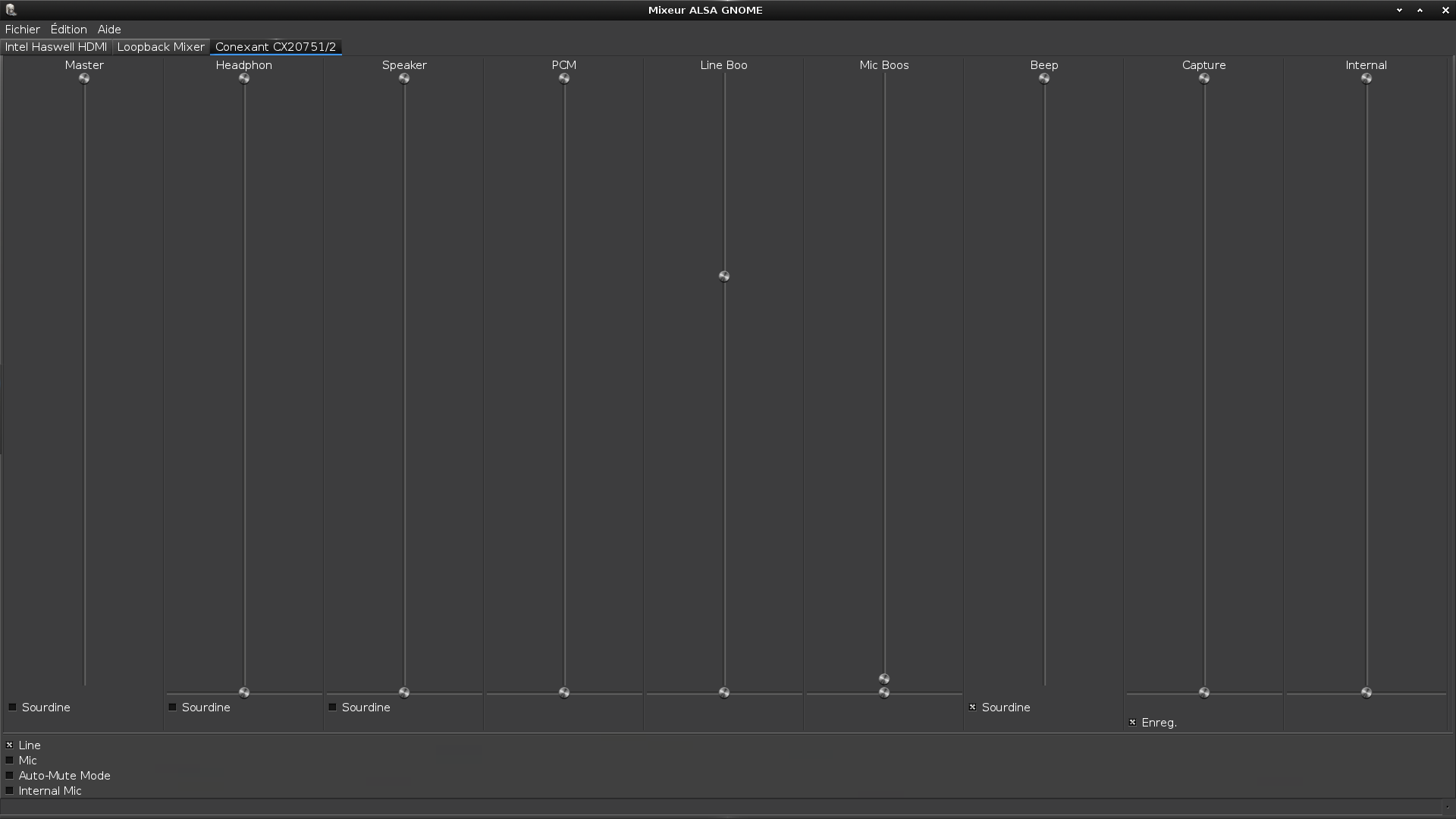 Je me présente je m'appelle Christophe et je viens de me lancer avec io.gnu.linux le souci c'est que mon pc portable lenovo z50-70 ne comporte qu'une connectique pour l'entrée line ,casque ,micro qui fonctionne parfaitement sur windows avec le logiciel smartaudio, qui me permet de choisir le type de connexion que je désir effectuer. Existent il un moyen de gérer cette connectique sous linux?