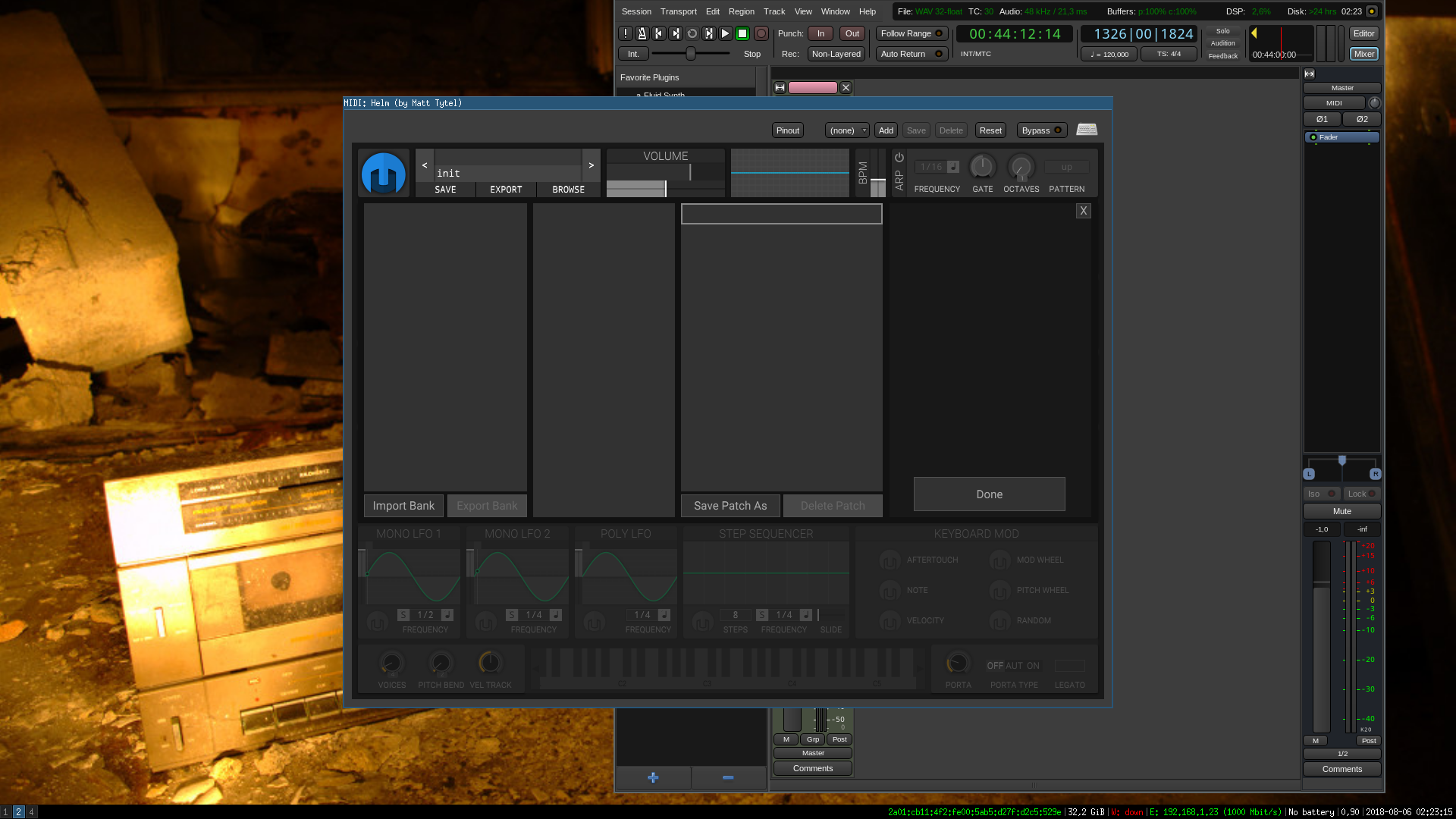 Helm: 0.9.0 (LV2/VST/standalone) compilé depuis git. Version de JUCE : v5.3.2
