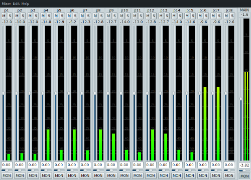 Maintenant, je voulais aussi disposer d'un mixer pour étalonner plus précisément mes canaux (j'en utilise 18). J'ai ajouté à Claudia, Jack-mixer. J'ai configuré proprement celui-ci pour mes sorties.