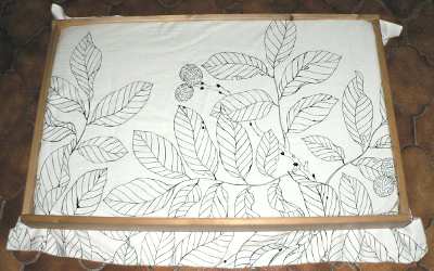 Maintenant que le cadre est assemblé, nous allons y insérer la laine de roche, ainsi que le tissu utilisé pour le verso de notre panneau.Et voilà, la partie arrière de notre panneau est terminé !